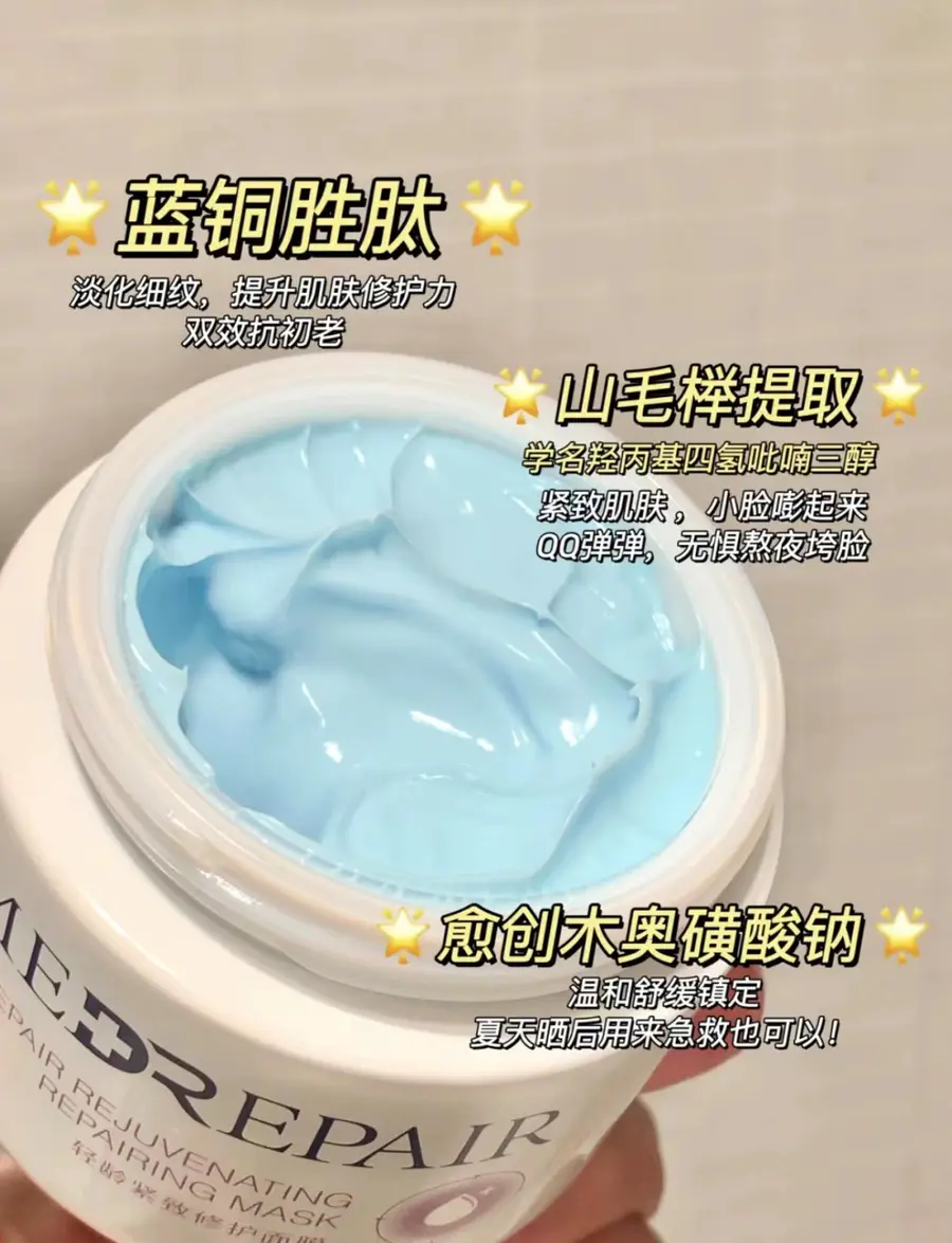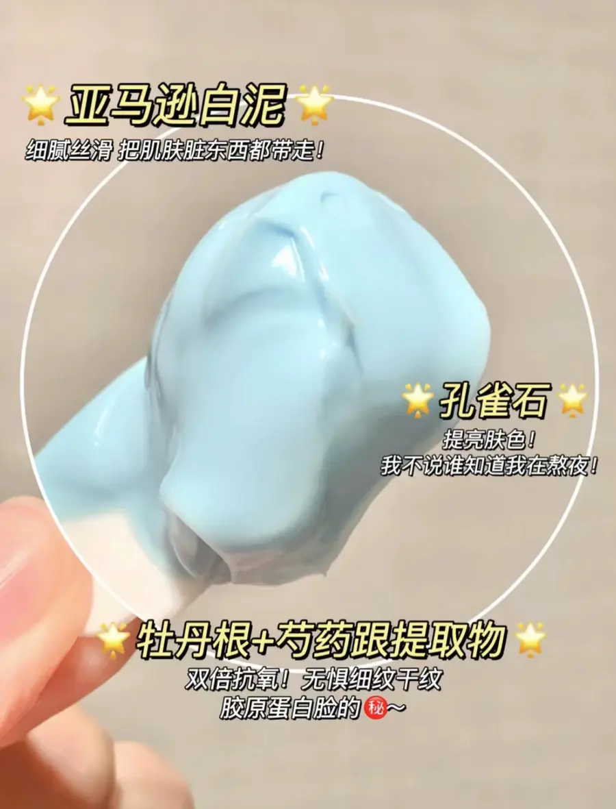 先说我为啥选它,里面的主打成分是蓝铜胜肽,这可以说是抗老提亮里边的尖子生,敷起来温温和和的没想到去黄效果超级加倍!!再搭配孔雀石、牡丹根芍药根提取,提亮紧致的同时还兼顾了抗氧去黄,符合20+姐妹抗初老刚需!还添加了亚马逊白泥、华熙生物矩阵玻尿酸,先清洁肌肤的老废角质和脏东西,再补充水分,毛孔既干净又水嘟嘟的,一举两得啊!!