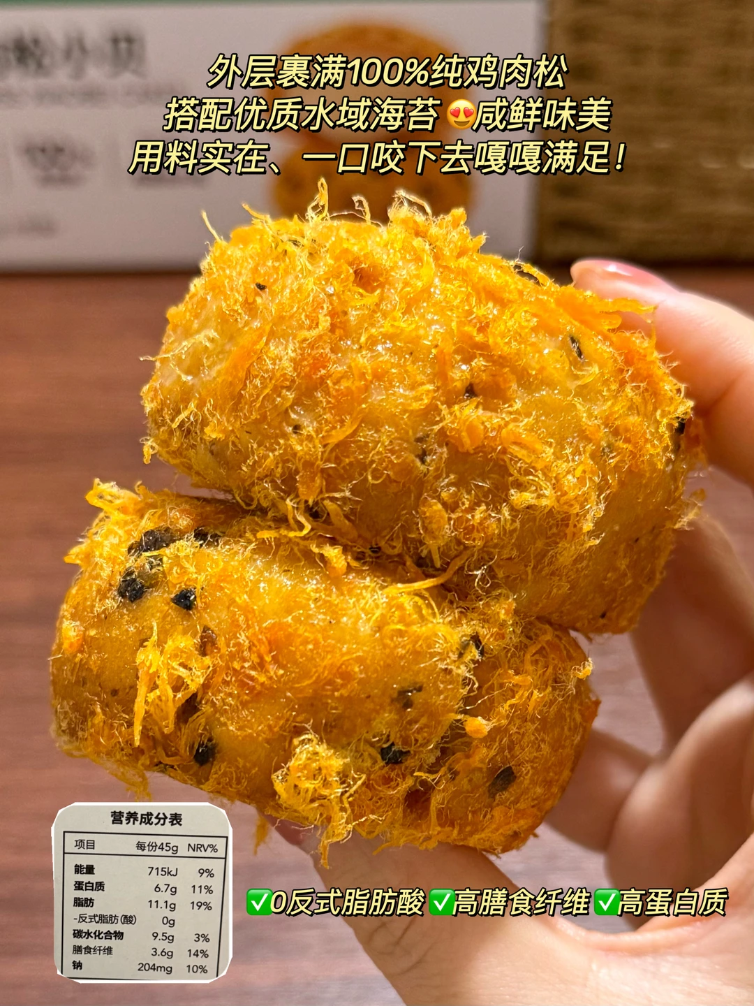 ✅精选优质海苔纯鸡肉松,不添加豆粉,是100%纯鸡肉松!好原料造就好味道👏