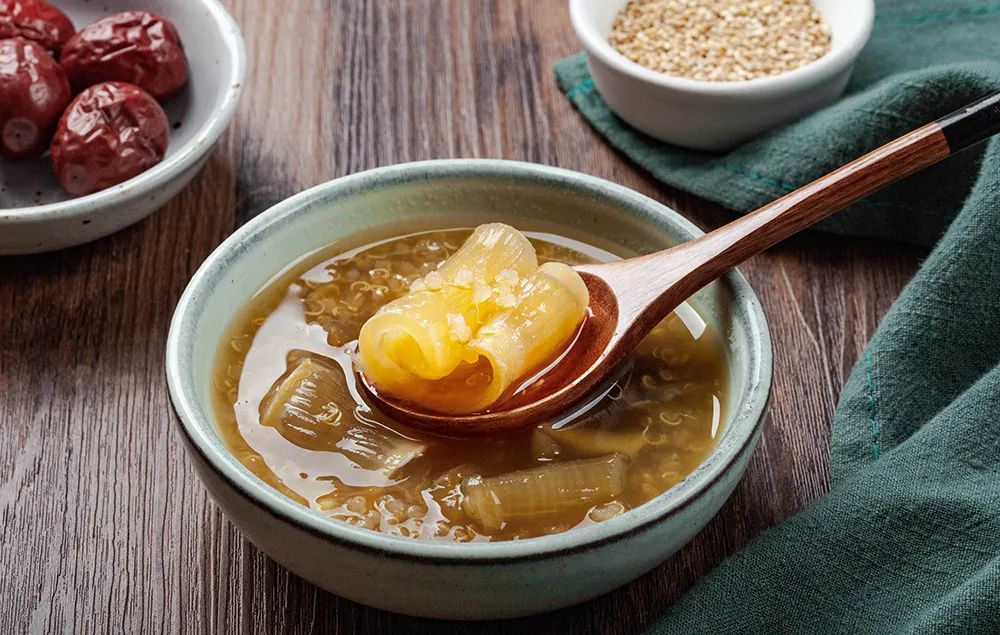 传统医学上对花胶是非常推崇的,在广东潮汕,每家每户都会为出嫁的女儿准备花胶,用于孕期产后进补,因为花胶有助于补肾益精,可以止血补血、伤口愈合、分泌乳汁。体质虚弱又想要生下健康的宝宝,很建议用花胶来补气血。