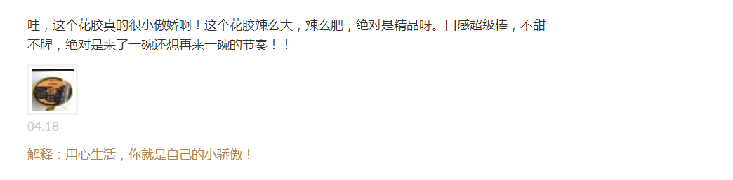不瞒大家说,最初做小娇傲花胶,其实是想推荐给新客人的,因为运营同学立山和我讲,娇金汤花胶太贵了,很少新客人愿意尝试。迫于无奈,我们只好开发了“性价比更高” 的小娇傲。