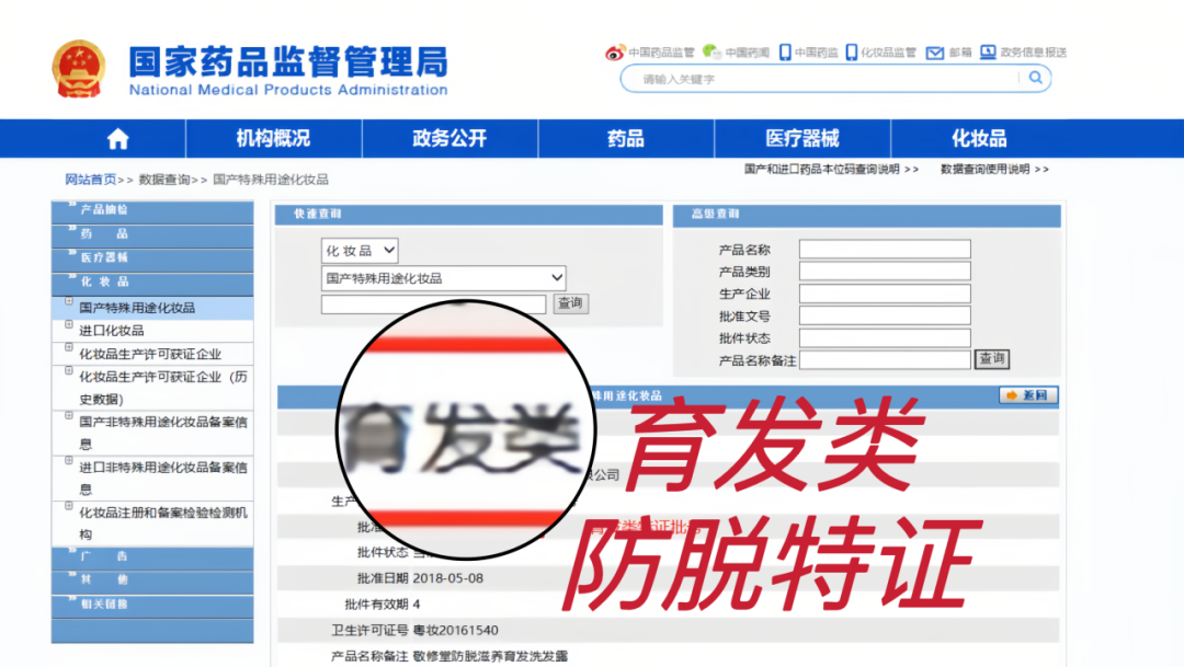 要知道,一般的防脱用品,只是妆字号,并没有特字批文。而这款洗发水,持有药监总局发出的特殊批件。