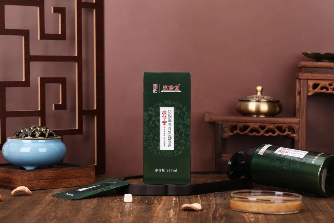 和市面上的化学洗发水不同,敬修堂的研发团队针对东方人的发质特点,利用生物技术提取了侧柏叶、何首乌、当归、凤尾草中草药材精华