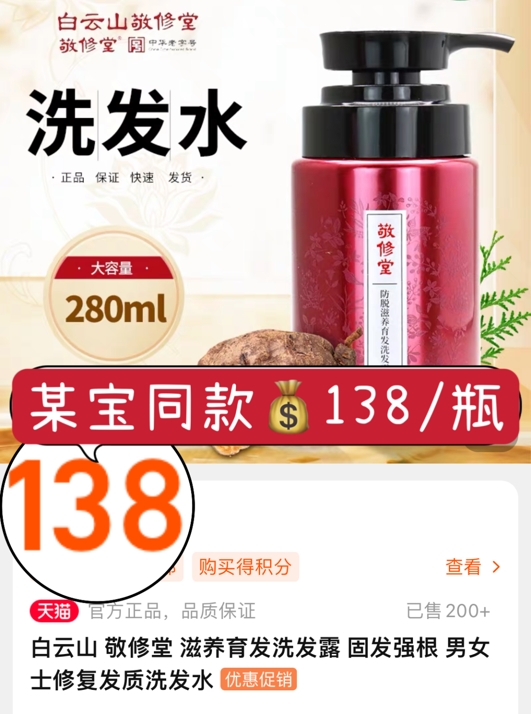 如果你也有白发困扰,这款敬修堂防脱滋养育发洗发水推荐给你,零售价138