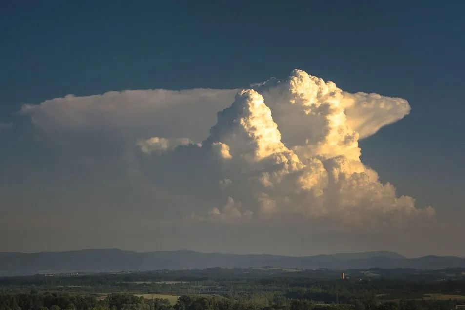 高大浓厚,上端呈塔状或砧状,中底部黑暗的积雨云,通常会带来强阵性降水,并伴有大风、雷暴、冰雹、龙卷风等强对流天气。
