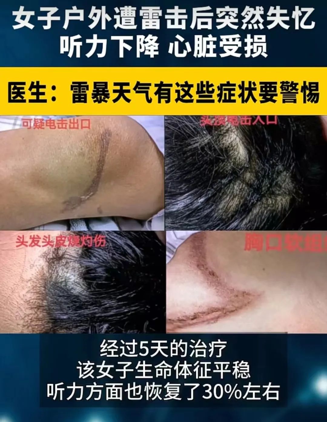 雷击的伤害并非一时的,雷电冲击波会造成颅骨骨折或内脏损伤。幸存者也可能遭受长期病痛,甚至残疾。