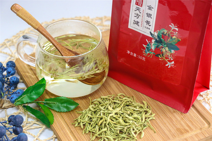 此外,现代药理研究表明,金银花为作用较强的广谱抗菌中药,能抑制与杀灭咽喉部的病原菌,对老人和儿童有抗感染功效,经常服用金银花浸泡或煎剂有利于风火目赤、咽喉肿痛、肥胖症、肝热症和肝热型高血压的治疗与康复,是“中药里的抗生素”。