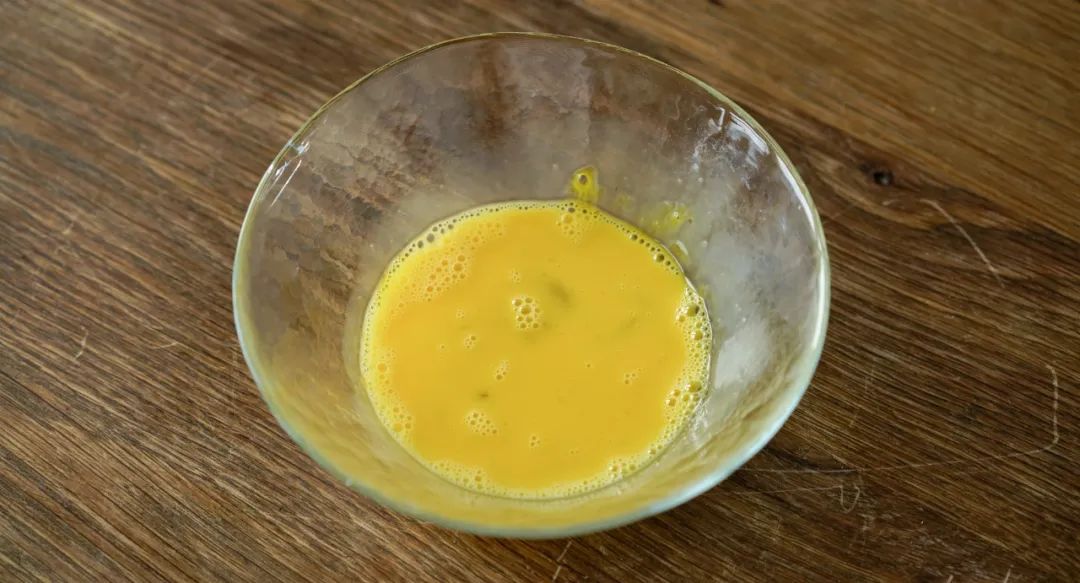 1.制作面团:取一个碗,打散2个鸡蛋。