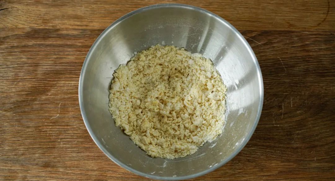将面粉搅成絮状。