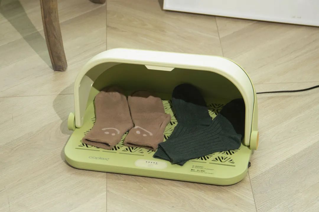 除了暖脚,还可以用来烘棉拖、袜子,冬天的袜子就算晾干了也还是冷冷的,特别是回南天、梅雨季节的时候,潮潮的状态更让人崩溃。用暖脚器的臭氧杀菌模式烘一下,干爽又暖呼呼的穿起来整个人就舒服很多。