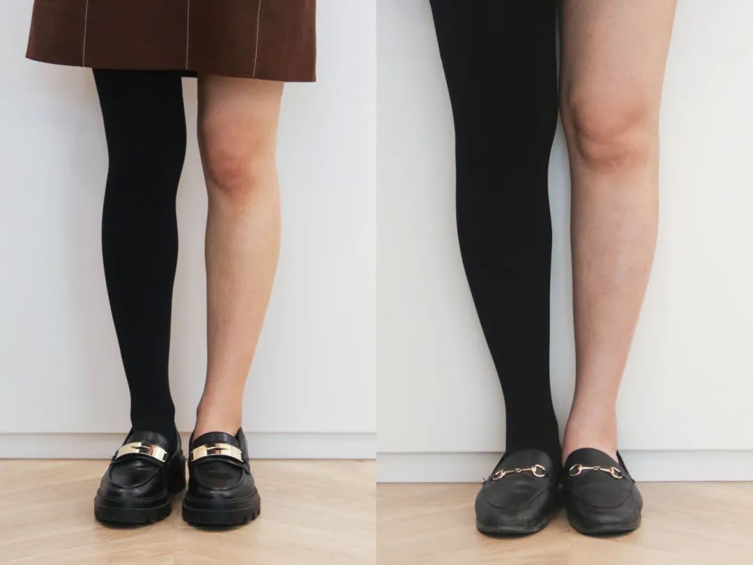 显瘦效果也不错,来看我和小伙伴上腿,左腿在视觉上更加紧致,要知道裤袜还是有一点厚度的👇