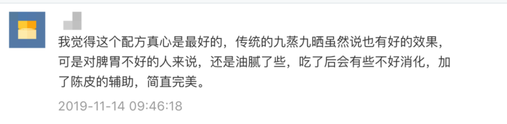 一、由迷罗老师亲研,在黑芝麻之外加上了桑椹,增加其滋补肝肾的功效,再加上2016年的川红橘大红袍制成的川陈皮,能够健脾理气化湿。核桃仁为其加上了丰富的口感,整体补泻平衡,不燥不腻。