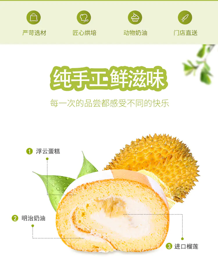 ☁榴莲浮云卷 进口马来西亚榴莲肉,口味独特,让人爱恨两难~