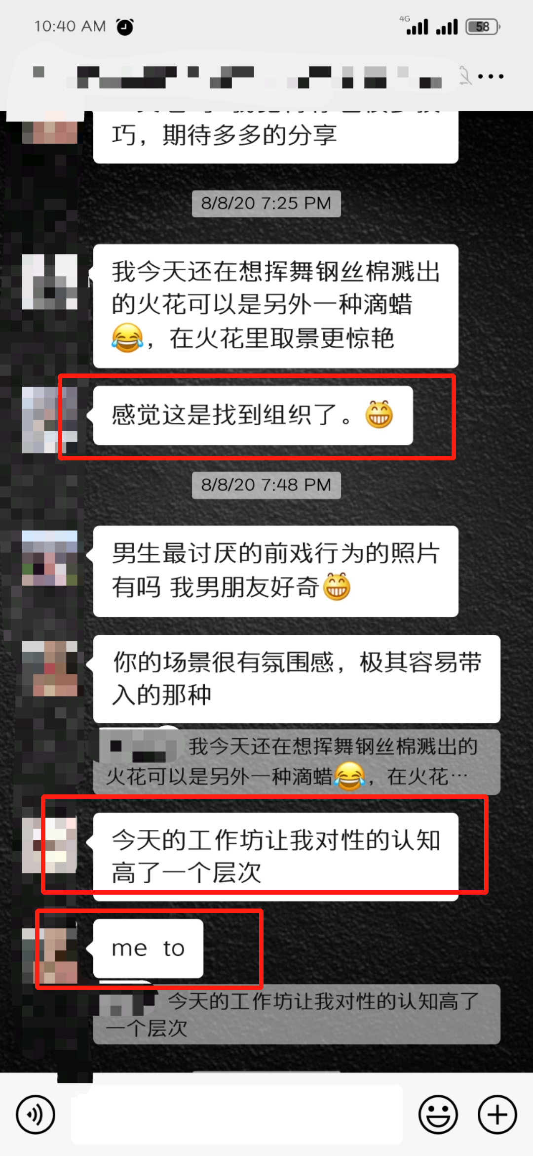 从前感知到自己是对性有着渴望和热爱的人。而因教育或传统思维束缚,羞于分享。但经过周六短短几个小时,素不相识的同学们从害羞到放松,让我第一次真切地感知到,原来前行的路上我从来不是孤军作战,而且同伴比我想象中还多得多,很多比我走得更久更远。