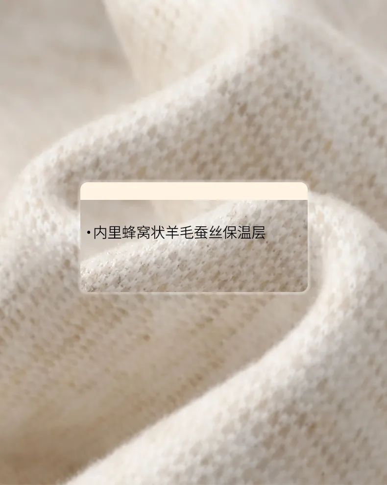 上身舒适贴肤,具有极强的保暖性能,同时,桑蚕丝的轻盈透气性,让你即便在暖气房内也不会觉得闷热。