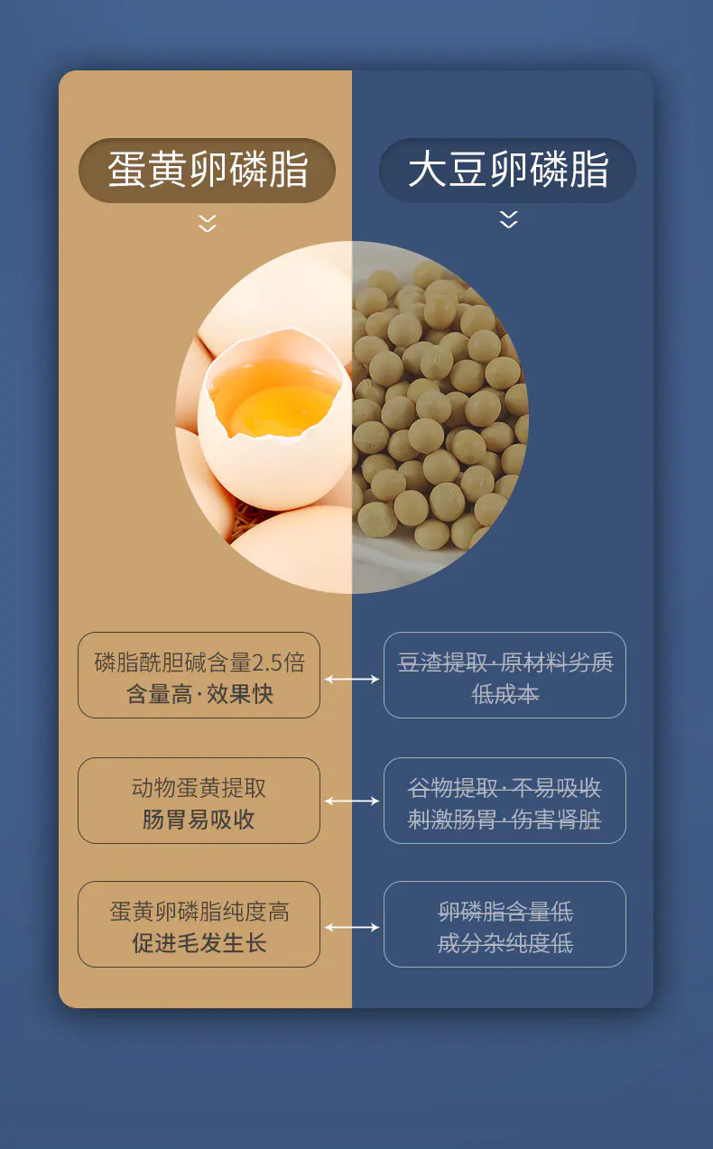 动物蛋黄提取,卵磷脂含量多,活性好易吸收。帮助毛发生长,有助于修护受损皮肤