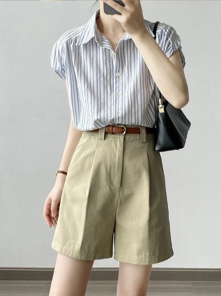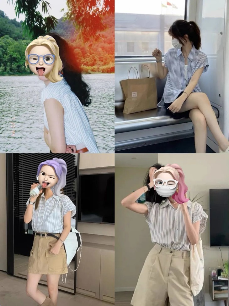 平时约会、逛街凹造型, 衬衫+裙子/牛仔裤,休闲又有松弛感 ,韩系欧尼的氛围轻松get到。