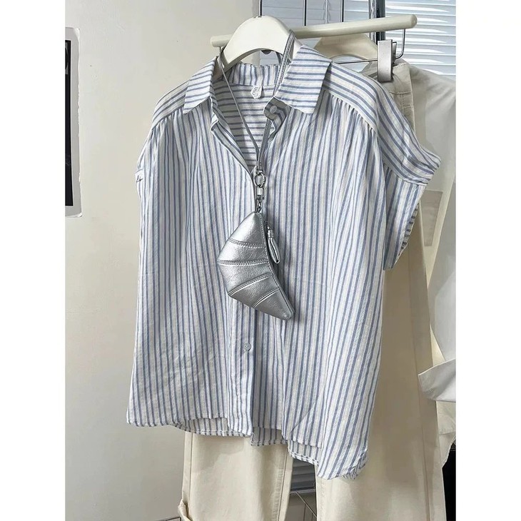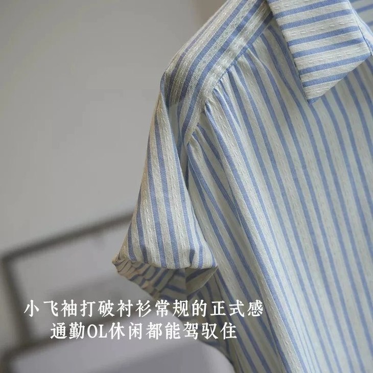 淡蓝色条纹,像是大海的清爽 ,很素的色系,完全不挑肤色,白皮/黄皮显得人更白了,黄黑皮穿上整个人都显得很干净,素雅的气息拉满,真的太爱太爱了~