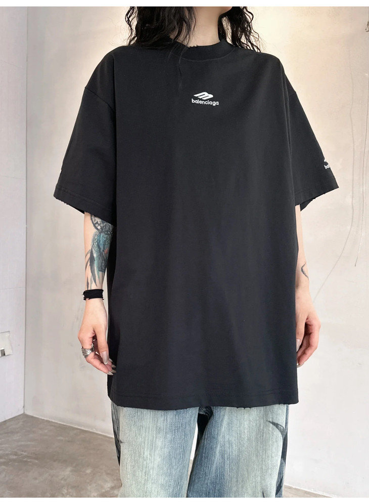 B.L.C.G 三标刺绣 情侣款宽松圆领短袖T恤