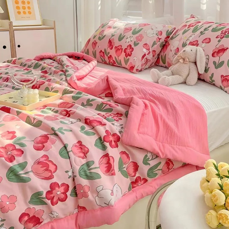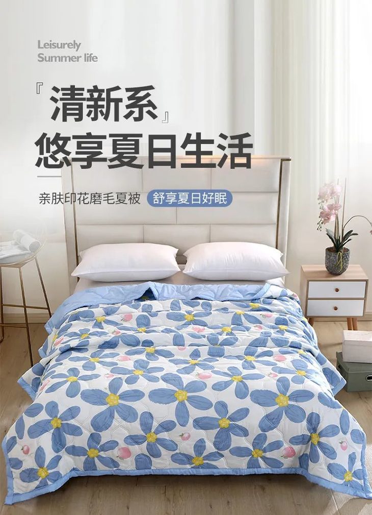 这时,一张花色好看、质感柔软亲肤,透气舒适的夏凉被就派上了用场。