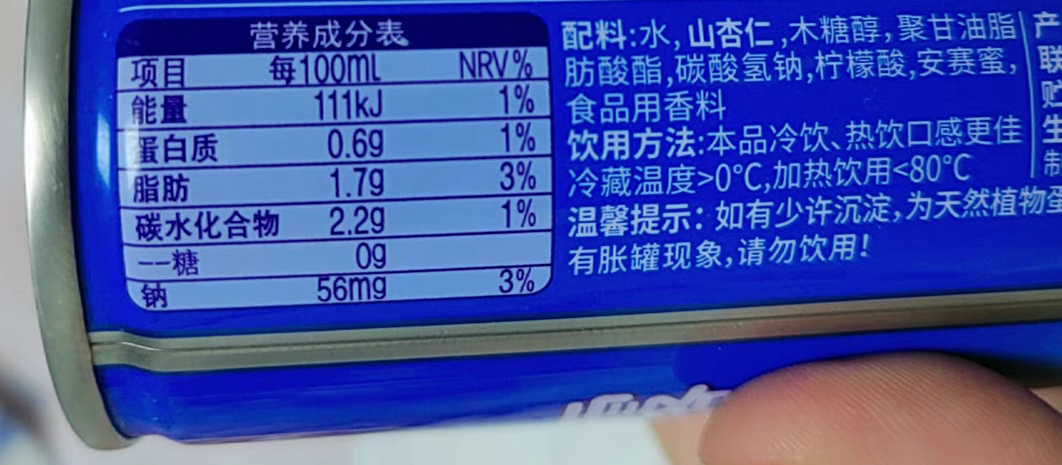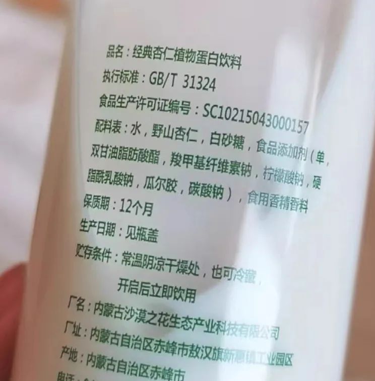 而此前沙漠之花的杏仁露饮料配料表是这样的