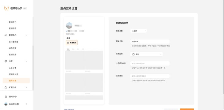 3.设置"菜单类型"为小程序,支持自定义菜单名称(不得超过4个汉字)