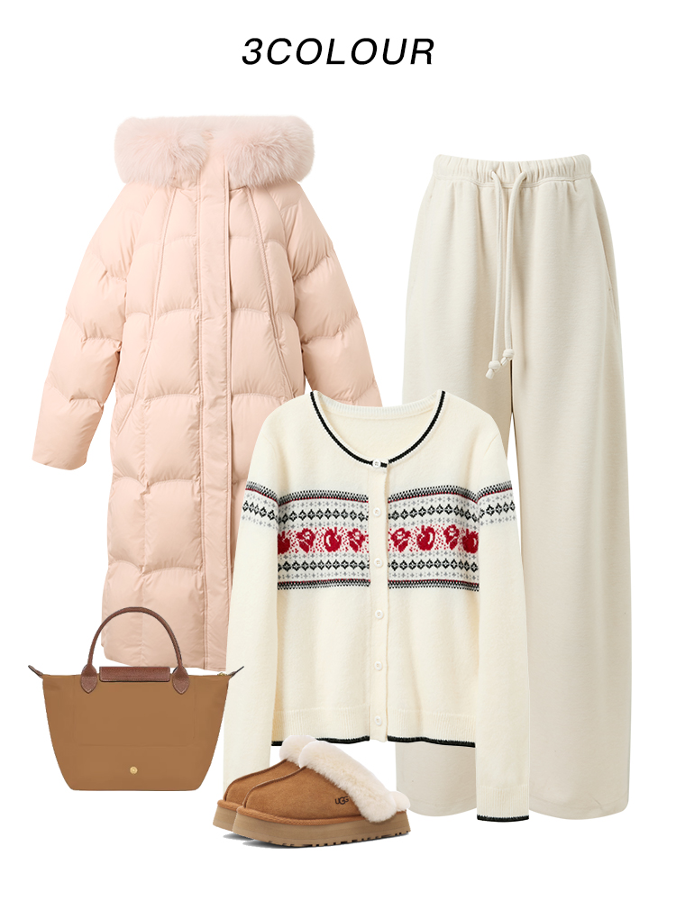 清新蜜桃粉羽绒穿搭灵感