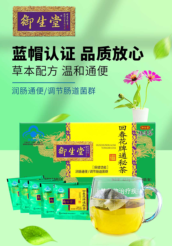 有了大品牌御生堂回春牌“通秘茶”的陪伴,肠道健康!