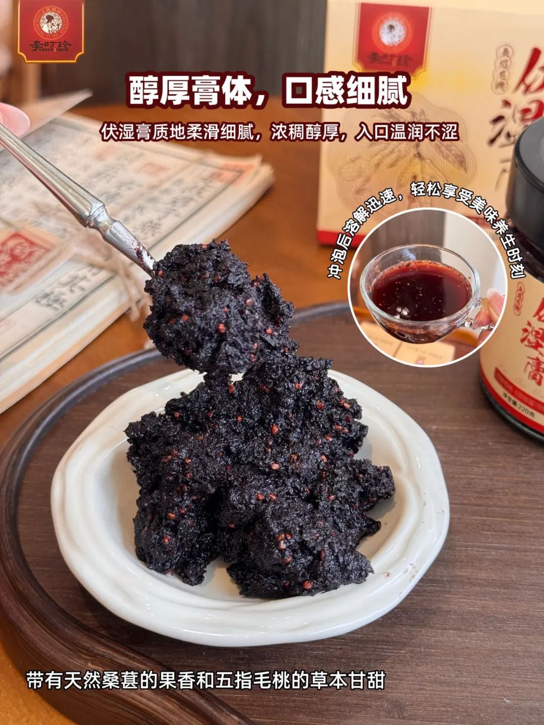 伏湿膏的口味也很不错,膏体呈现出深邃的琥珀色,质地浓稠却不粘腻。