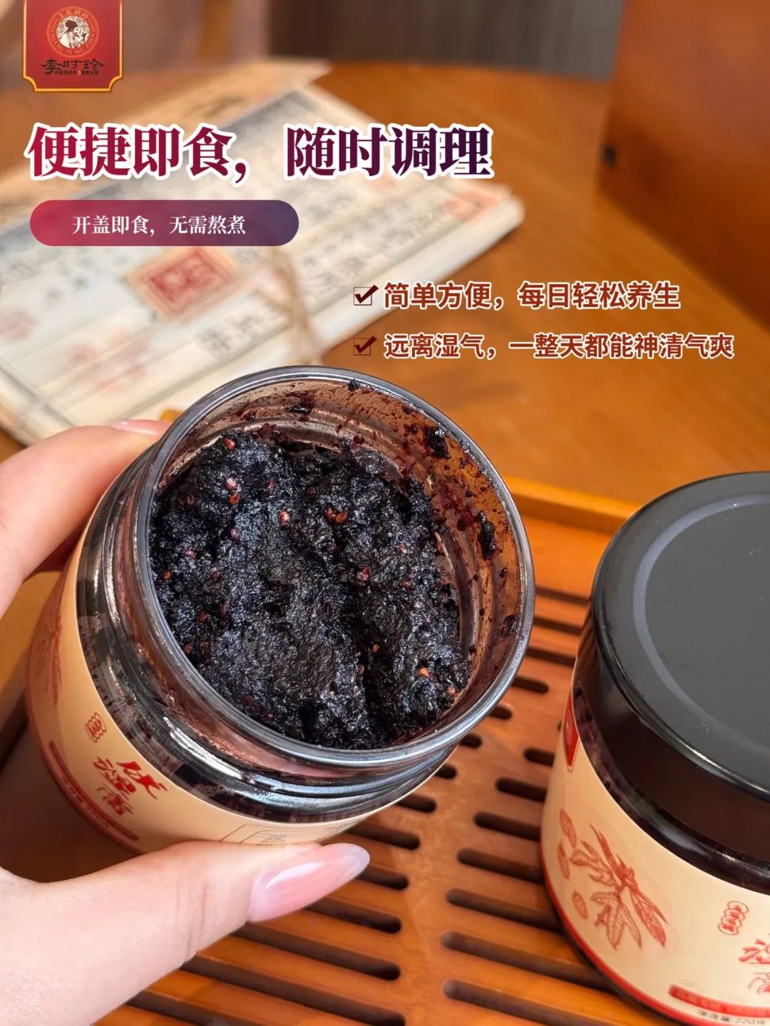 取一勺(约10-15g)伏湿膏,直接放入口中缓缓吞咽,让草本精华直达脾胃;