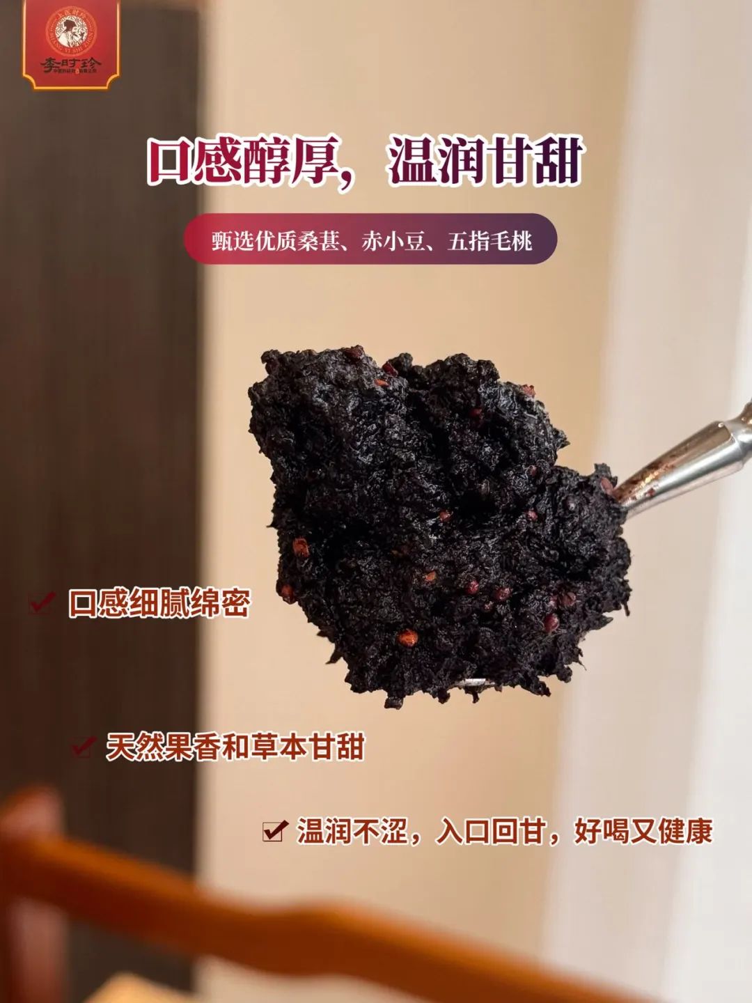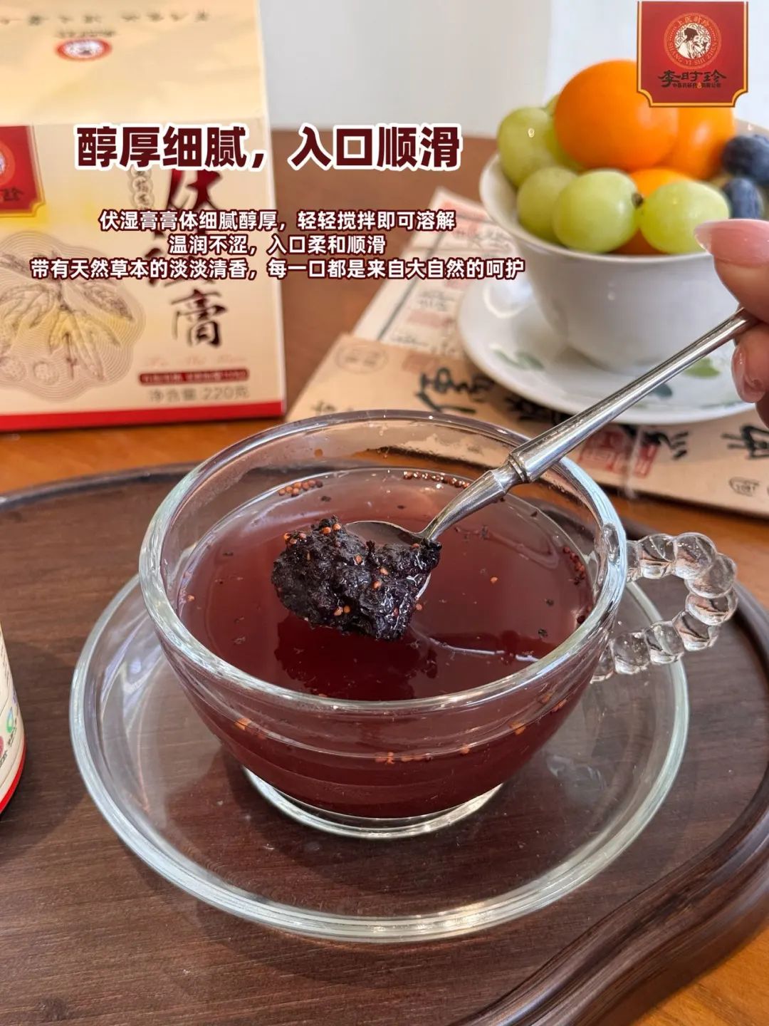 入口时,膏体细腻醇厚,像巧克力般丝滑顺口,带着微微的甜意,丝毫没有普通中药那种苦涩味。