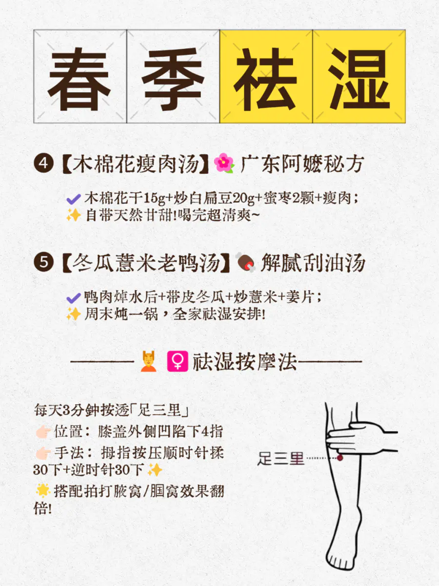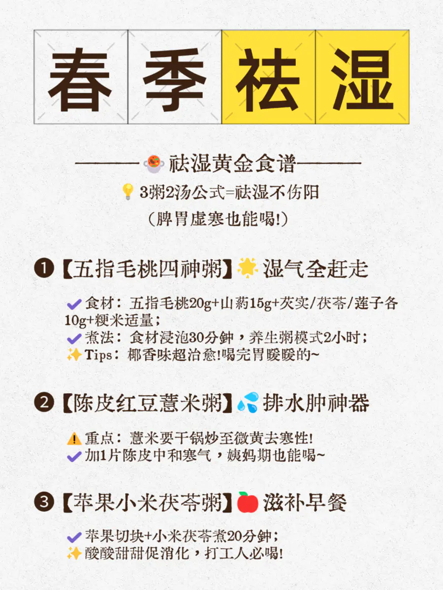 春季祛湿黄金公式!3粥2汤+按摩法✅