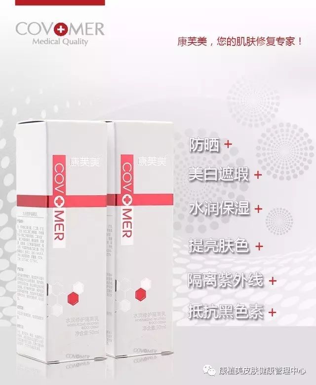 ③干性肌肤的先天性皮脂活动力弱,后天性皮脂腺和汗腺在逐渐减少,皮肤血液循环不良导致角质层水分含量低下,紫外线最大的伤害就是导致肌肤缺水、保水能力下降,而不可逆转地光老化,这是对干性皮肤比晒黑更为危险的伤害。所以干性肌肤应选用质地滋润,并添加了补水功效以及增强肌肤免疫力的防晒品。(如:康芙美白润/水润修护隔离乳)