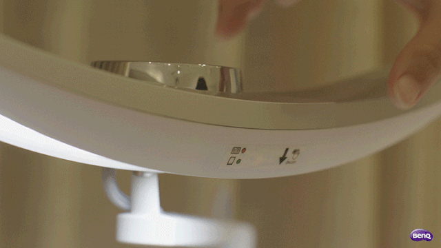 按压一下灯头上的旋钮,当看到面板上外圈的彩虹光圈亮起来的时候,旋转面板就能直接调整色温啦。