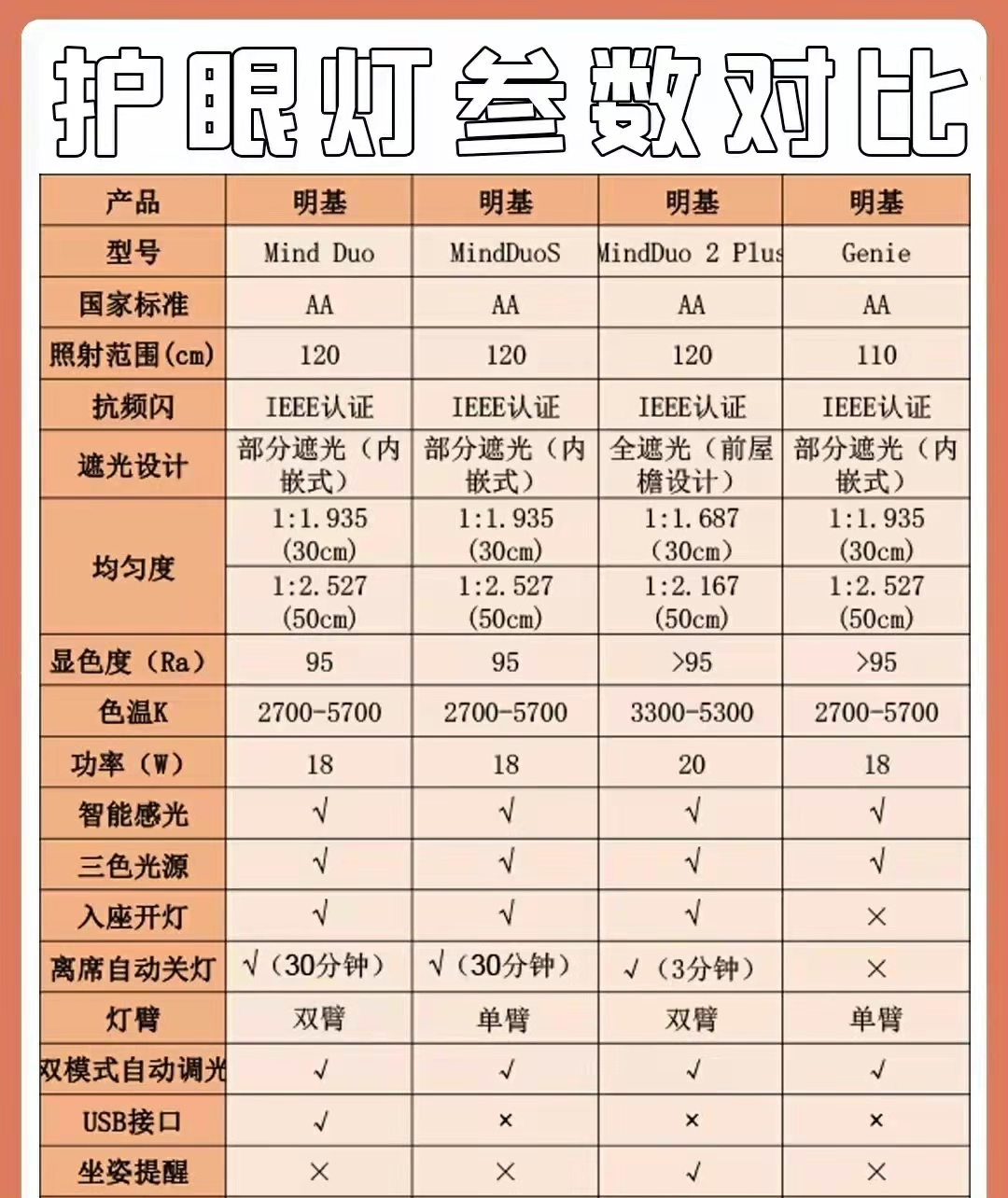 还有一款Mit Genie,无自动感应开关和阅读30分提醒功能,照射区域比MindDuo少10cm,可以考虑给大宝和成人的书房卧室或工作区域: