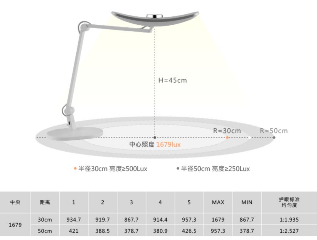 参与研发的工程师爸爸说:“把灯光做广,让我和孩子有一方共享的天地”。这里的“广”可以通过一个指标进行考量:照明范围。要知道,很多品牌的护眼灯甚至连照明范围的数据都查不到呢!