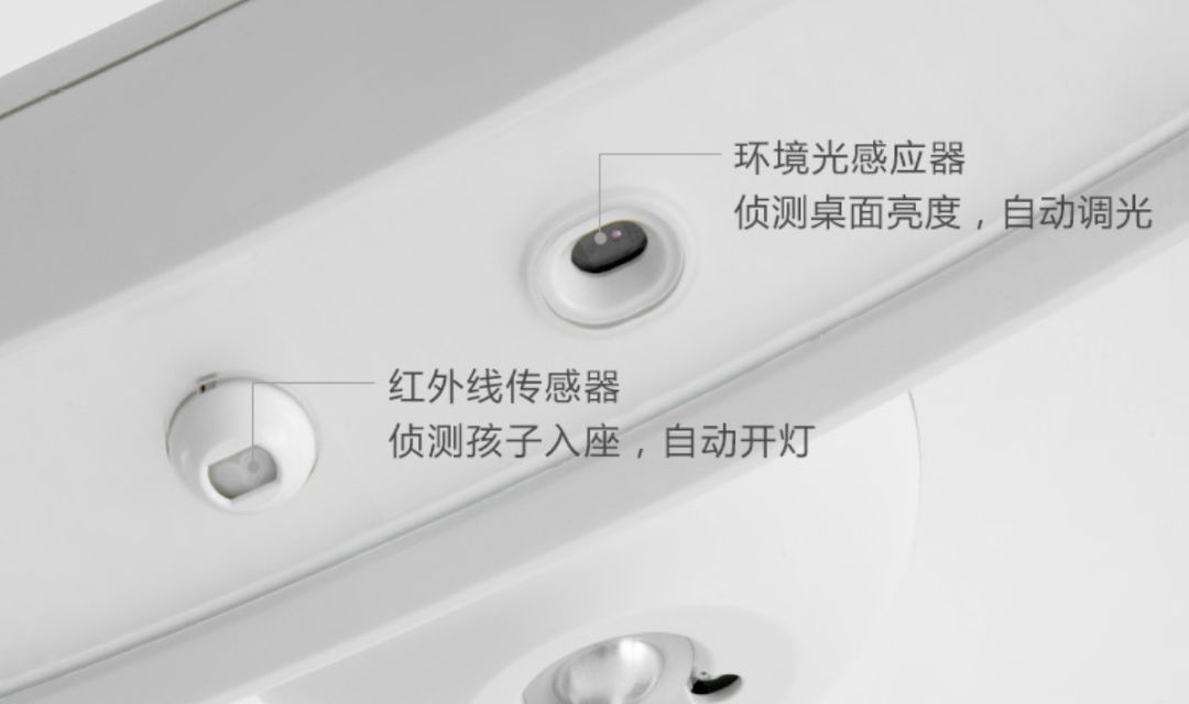 入席自动开灯、自动侦测调节亮度、每30分钟自动提醒孩子休息眼睛