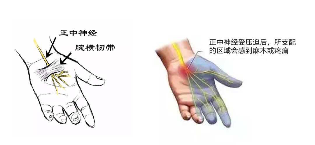 手部腕横韧带始终压迫正中神经,
