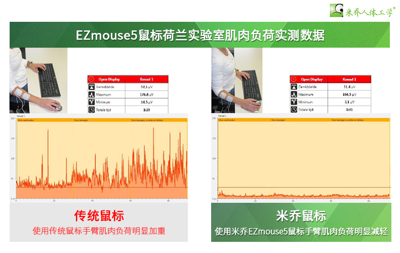 荷兰人体工学鼠标肌肉实测数据显示,