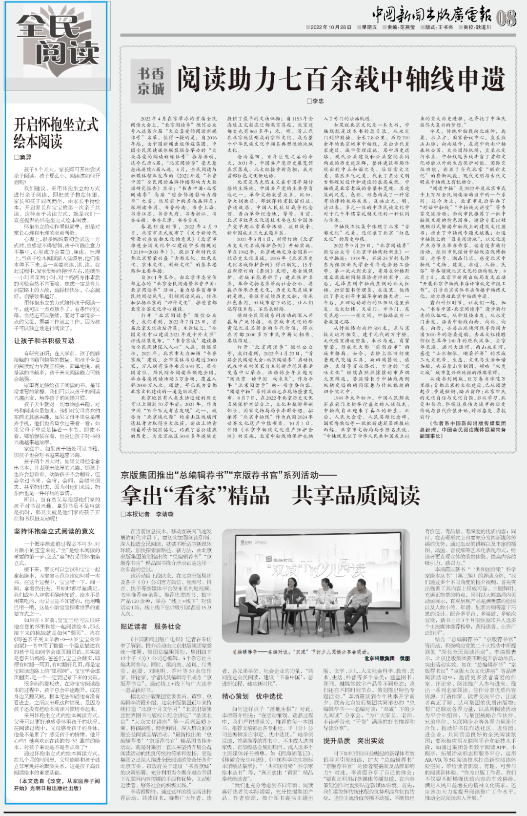 2022年10月28日,《中国新闻出版广电报》“全民阅读”版面,刊登了窦羿老师新书《改变,从家庭亲子阅读开始》一书中的节选内容。