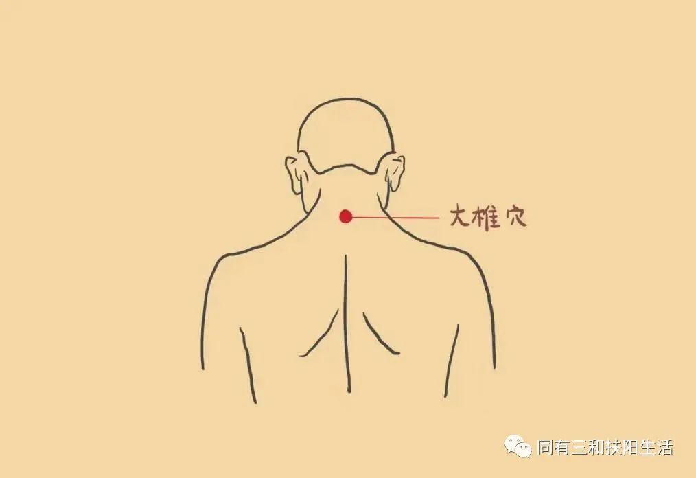 大椎穴:在第7颈椎棘突下,是督脉及手足三阳经交会之处。