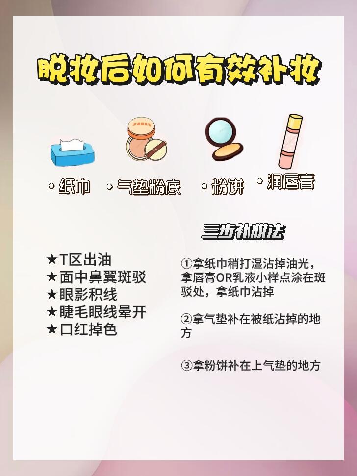 脱妆后如何有效补妆🤔请看!📝