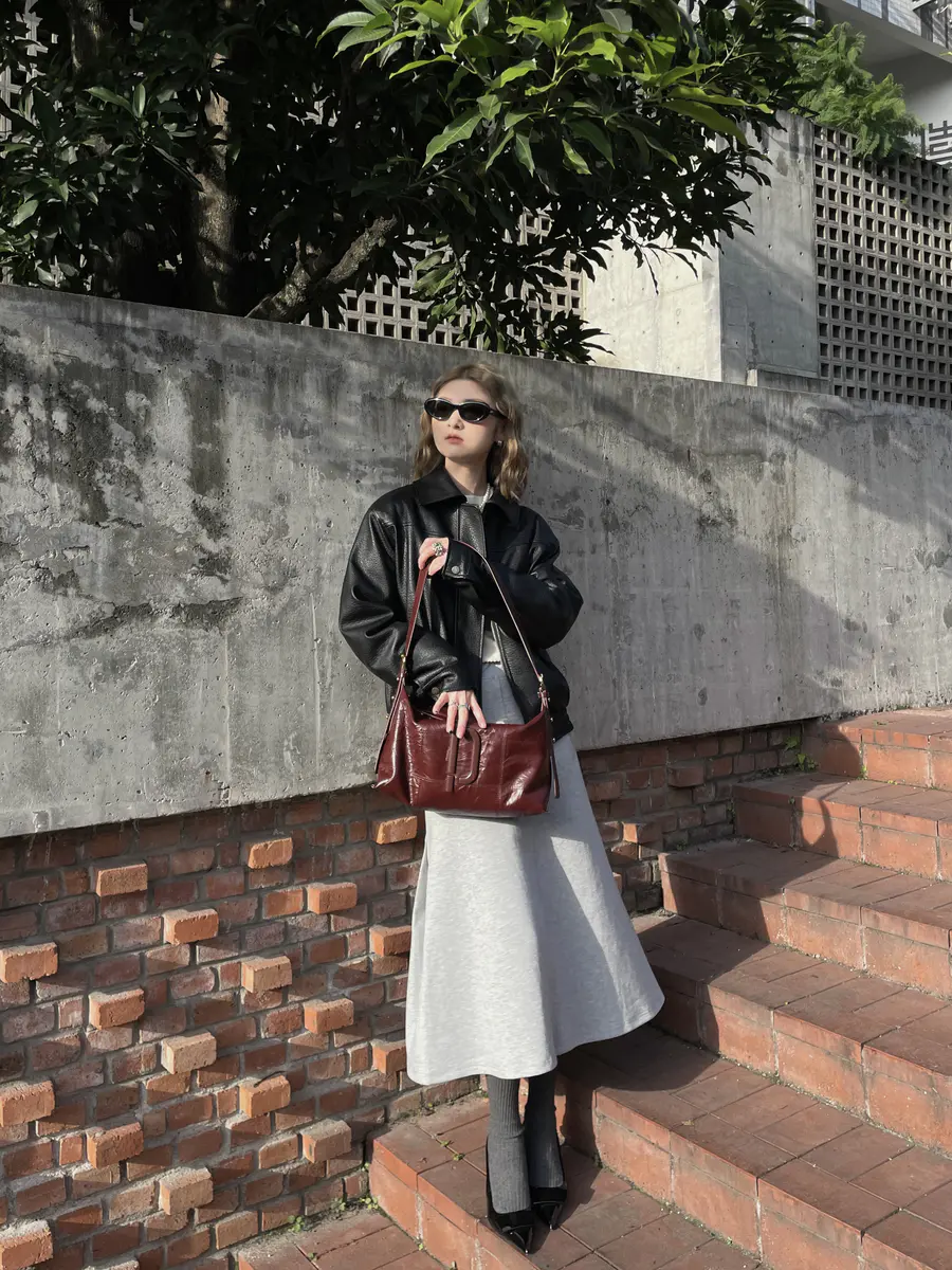 新品上身 | 荔枝纹夹克搭灰色半裙,miu风拿捏了👻