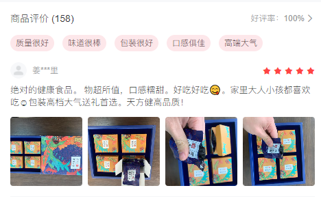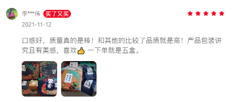 “口感好,质量真的是棒!产品包装讲究且有美感!”