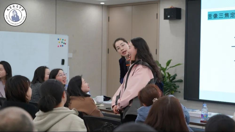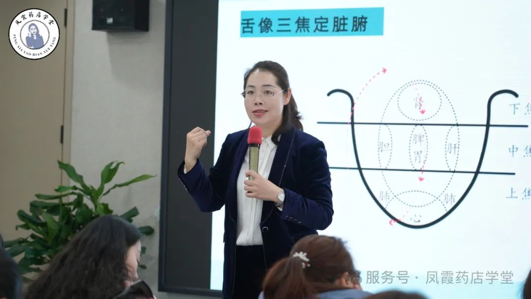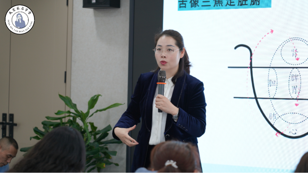 交流会上,霞悦堂首席培训师杨凤霞"公式舌诊“速判法。让药店人快速诊断。利用专业知识+产品组合。"比如舌尖红点对应心火旺,关联要点产品组合销售,客单价提升率达80%。"