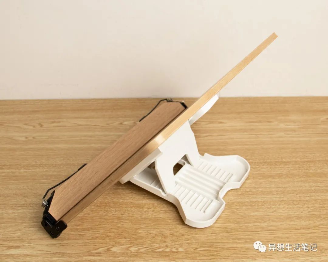 木质材质加上底座够宽,也让它足够稳,大部头书籍或15寸的电脑它架着都是稳稳当当的。而且各个接触面都有一层滑滑的包膜,不用担心会划伤书本或电脑。
