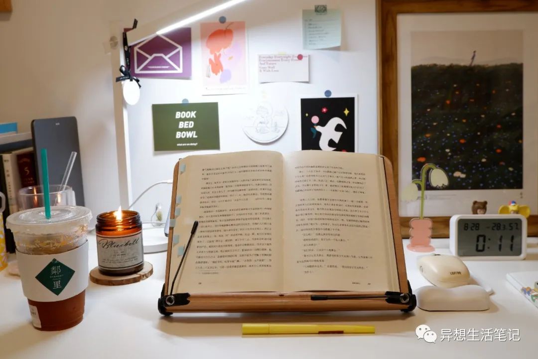 有人习惯躺着、或窝沙发上看书,但我更爱坐在桌前看,除了因为帮助更快进入状态(这一点在职考试党应该更有感触),总是低头,时间长了别说颈椎了,整个人都腰酸背痛,而且稍微厚一点的书不按着就会跑页。