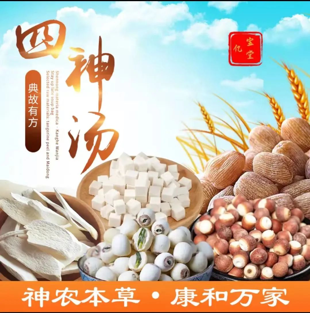 四神汤是中医著名的祛湿健脾的良方,女人和小孩喝尤其好,不仅保养五脏、祛湿气,还能清火养颜,奶茶刘若英就曾经在微博上推荐过哦。