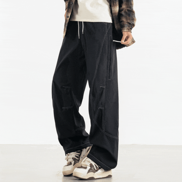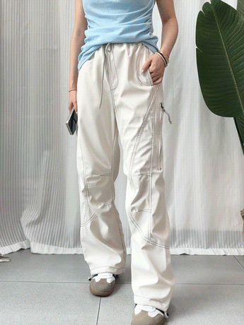 往下的撞色织带拉链是装饰哈,增添了裤子强烈的视觉对比感。