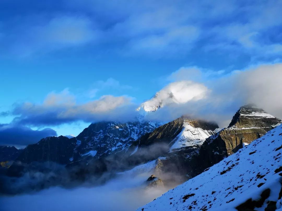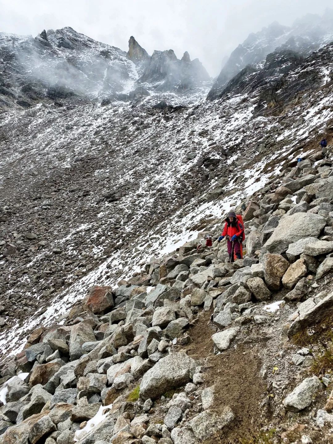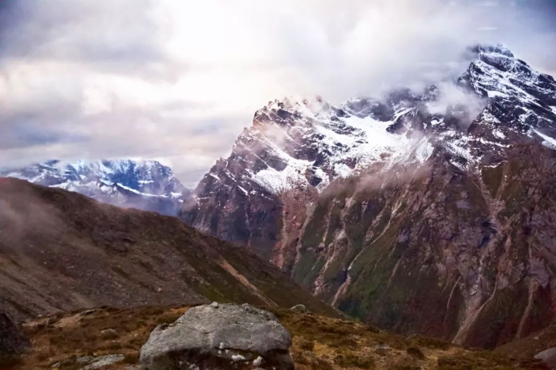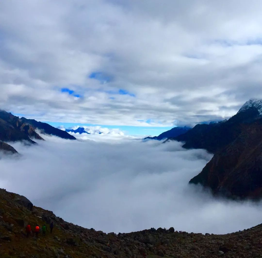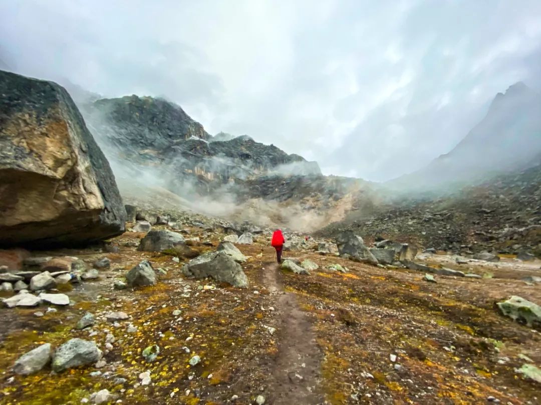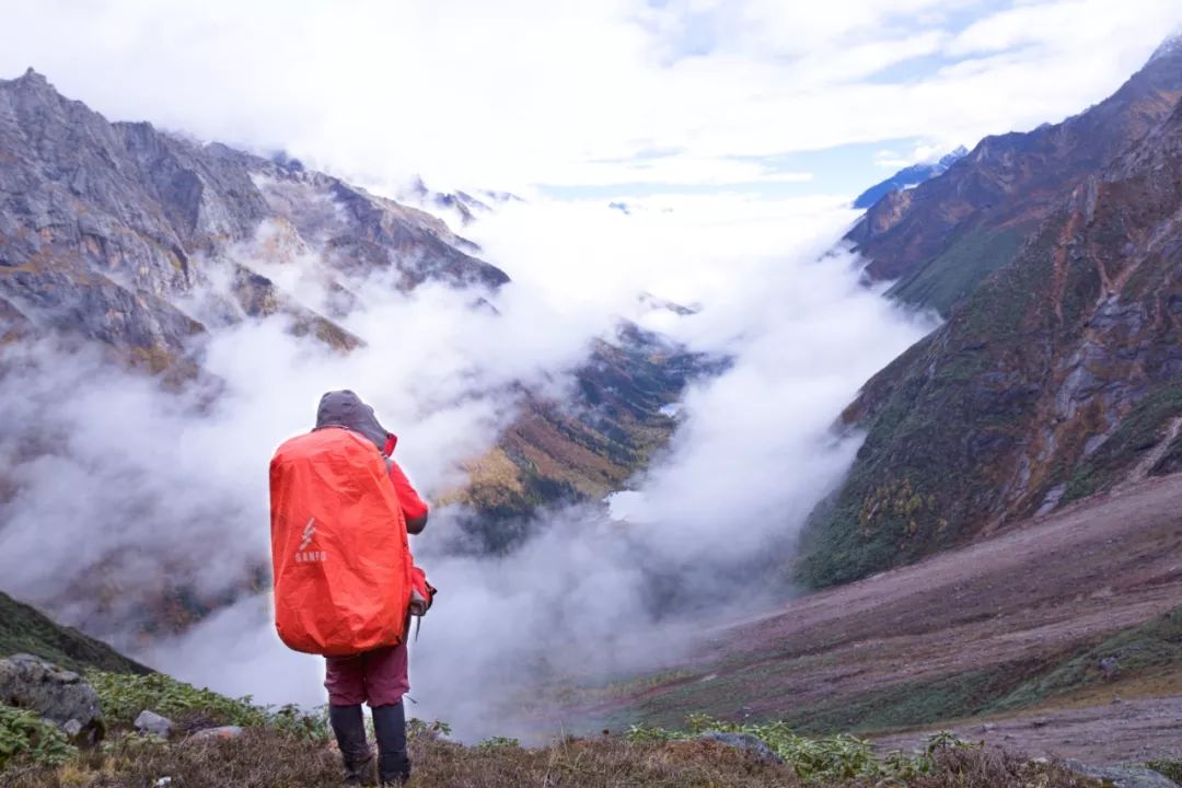 注意事项:翻越 4680m 垭口之后,要从大雪坡下山,秋冬季节必备冰爪,即便没有遇上雪天,这里的雪通常经年不化。