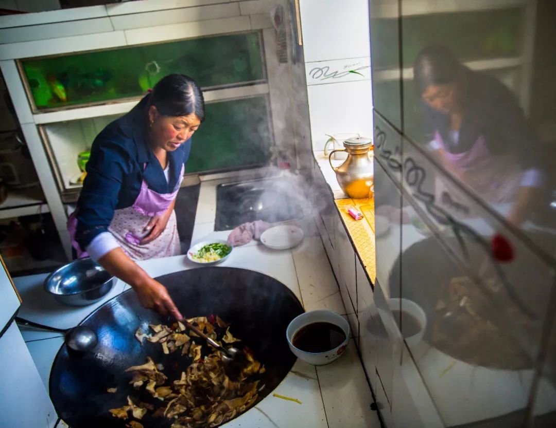 烤鸡归来,又是一个星空满天的浪漫夜晚,遥远的大山深处闪着光,很是夺目,是闪电,听不到雷声。同行伙伴皆驻足观赏这闪电与星光相映的时刻。回到藏民家不久便下雨了,藏民老乡在院子里为我们点上了火炉,大家围炉而坐唠起家常。说起这里的水好喝,老乡告诉说最开始都是自己上山背水,但现在已实现统一管道引山泉水直接入户,如今生活用水依然全部源于雪山融水,他很开心地透露经常给定居成都的女儿们送去“桶装雪山水”。